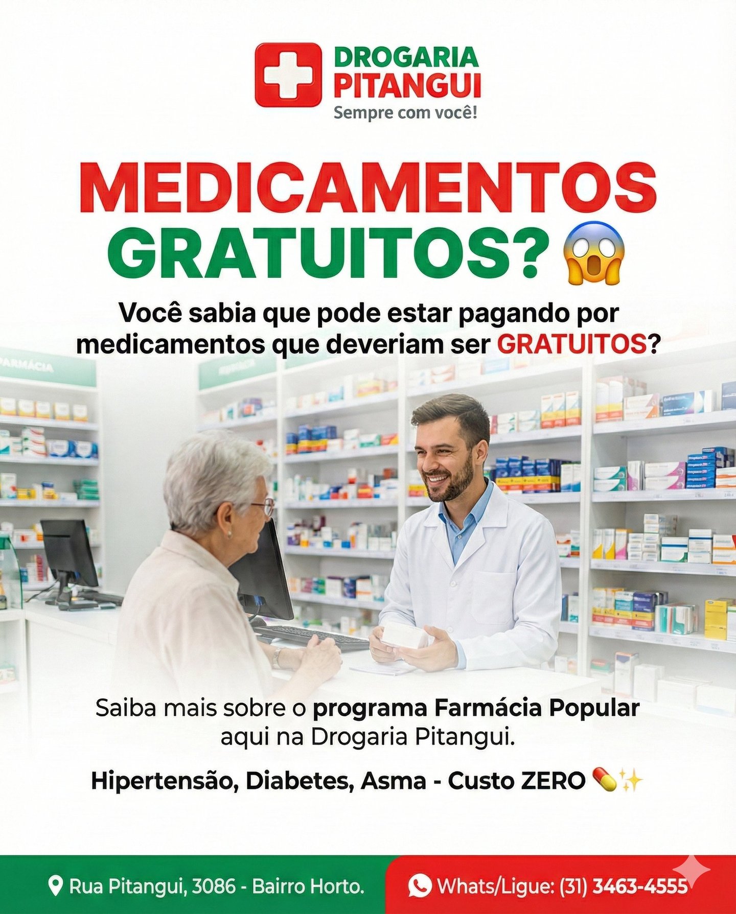 Drogaria Pitangui: Sempre com você! Venha nos visitar ou peça agora e receba em casa com a segurança que só quem é referência no bairro pode oferecer.