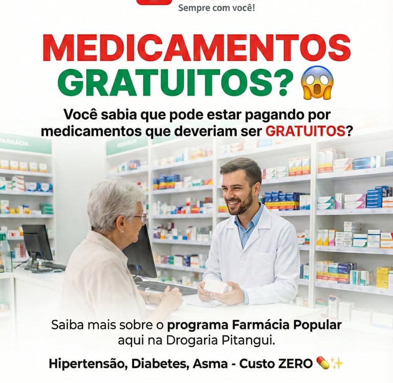 O diferencial da Drogaria Pitangui reside no nosso atendimento humanizado. Nossa equipe, liderada pelo farmacêutico Eduardo, está preparada para oferecer orientação profissional personalizada. Estamos totalmente adaptados às novas tecnologias, realizando o atendimento de receitas digitais com rapidez e segurança, facilitando a compra de seus medicamentos controlados sem burocracia.